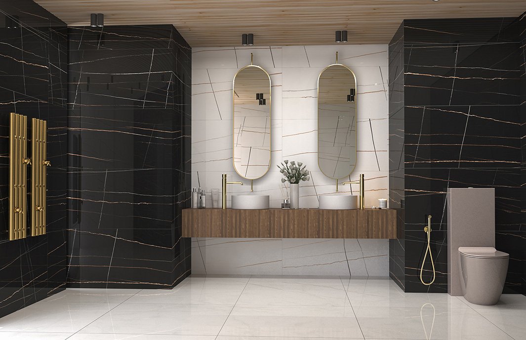 طرح کیارا مشکی و سفید فول پولیش الهام گرفته از سنگ های طبیعی سنگ مرمر ساهارا نویر سنگ مرمر ساهارا نویر یک سنگ طبیعی زیبا چشمگیر و لوکس است که به خاطر زمینه مشکی پررنگ و رگه‌های زیبا سفید، طلایی و مسی شناخته می‌شود. این سنگ مرمر که در تونس استخراج می‌شود، ظرافت جسورانه و زیبایی و مدرنیته را به هر فضای داخلی می‌آورد. طرح کیارا مشکی و سفید فول پولیش کاربردهای ایده‌آل برای حمام‌های لوکس، راهروهای ورودی، دیوارهای برجسته و آشپزخانه‌های معاصر. این طرح به زیبایی با تزیینات و لوازم طلایی از قبیل شیرآلات لوستر های زیبا ، چوب‌ و تزئینات مینیمالیستی و مدرن سیاه یا سفید ترکیب می‌شود